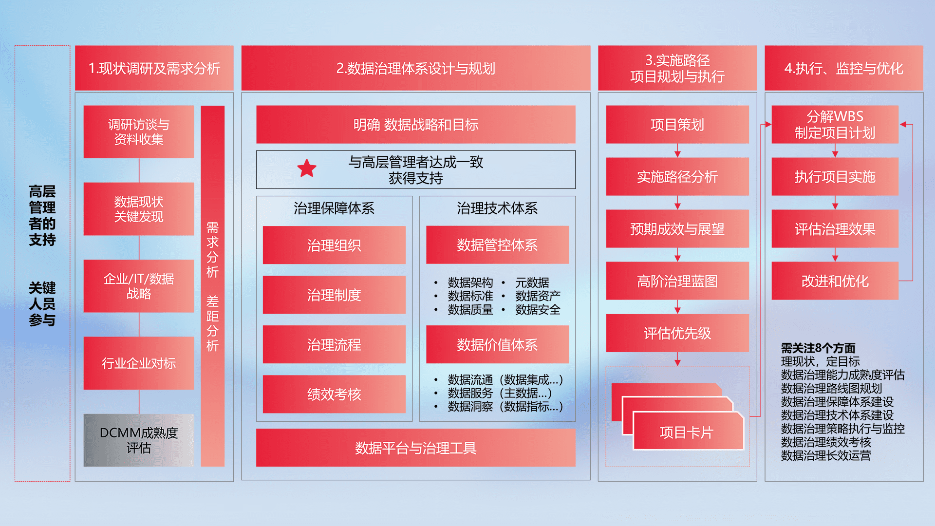 制定并执行统一的数据标准,,,规范数据定义和格式,,消除冗余和不一致性,,,实现跨部门和跨系统的数据一致性,,,,为企业提供标准化的数据基础。。。
